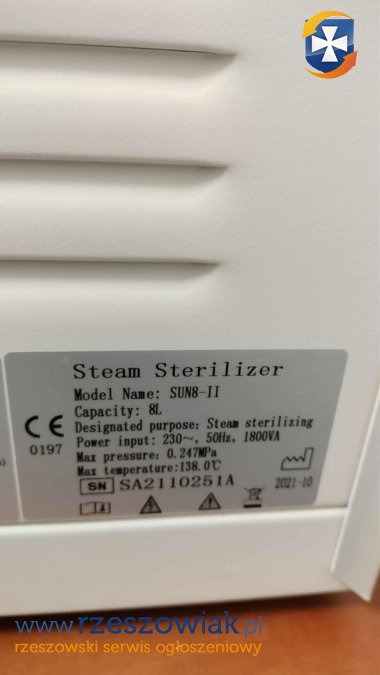 Sprzedam autoklaw Sun 8-II odbiór tylko osobisty- Rzeszów, ul. Okulickiego 20 Paszport + przegląd do czerwca 26