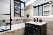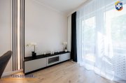 Mieszkania wyposażone w meble wysokiej jakości wykonane na zamówienie w stałej zabudowie tj. kuchnia, ścianka tv, szafa w przedpokoju, szafka w łazience. Zamontowany nowy markowy sprzęt AGD (lodówka, piekarnik, płyta indukcyjna, zmywarka, okap) oraz meble ruchome ( stół, krzesła i kanapa w salonie).