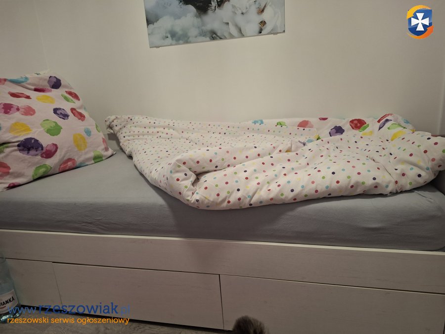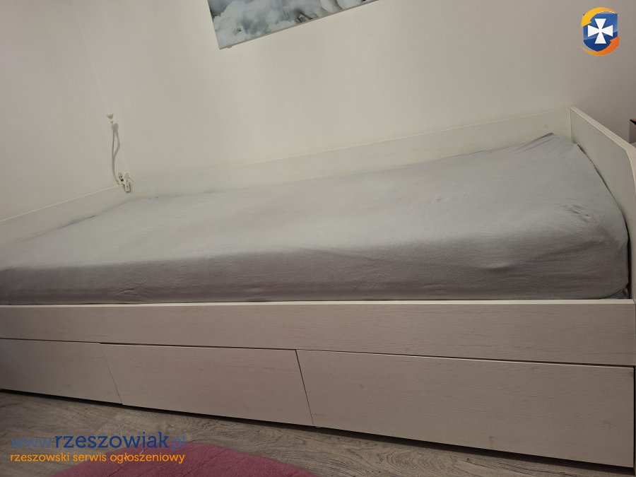 Sprzedam białe łóżko kupione pół roku temu razem z materacem, także kupionym pół roku temu i trzema szufladami na pościel i koce