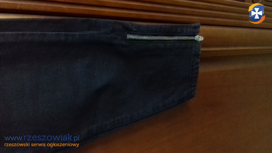 Sprzedam czarne jeansy firmy Camaieu. Stan b. dobry +, spodnie 7/8 lub pełna długość na niższą osobę, rozmiar z metki 40, wg mnie zaniżony-raczej 38. Zamek przy nogawkach.