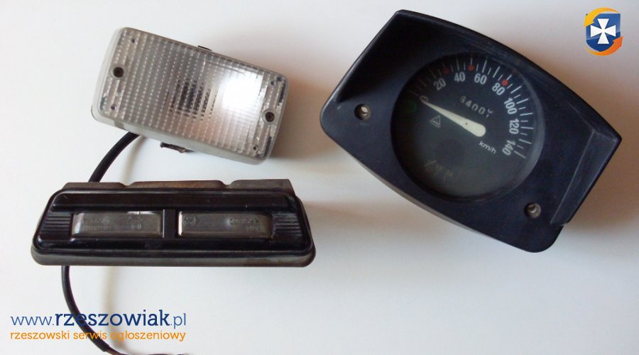 Sprzedam części do Fiata 126p - licznik kapliczka - lampka na rejestracje - lampa wsteczna - zderzak przedni - oparcie tylnej kanapy - lusterko prawe Cena za wszystkie części