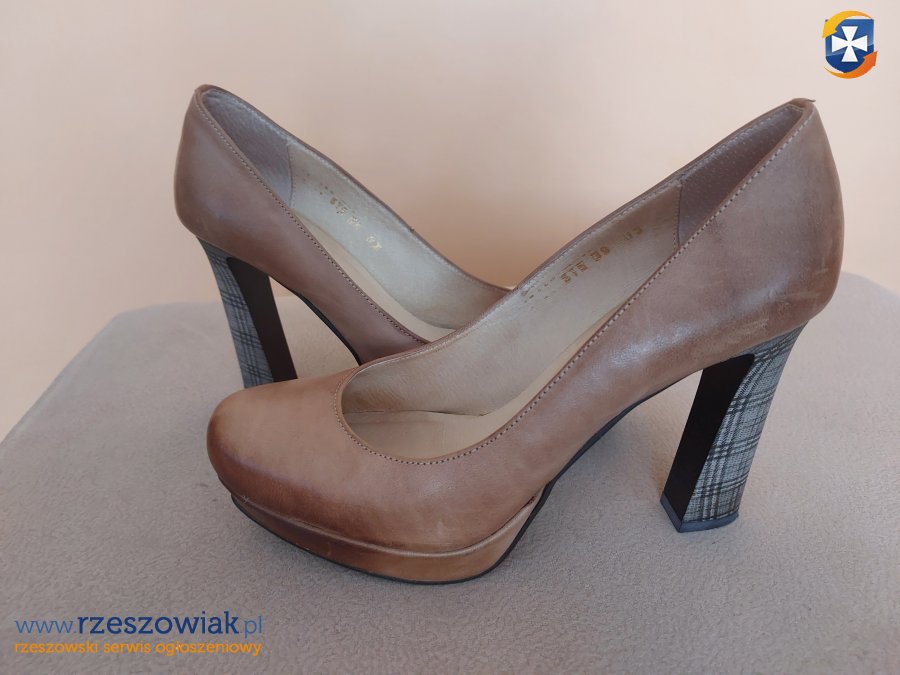 Sprzedam czółenka skórzane, r.39, obcas 6-7 cm