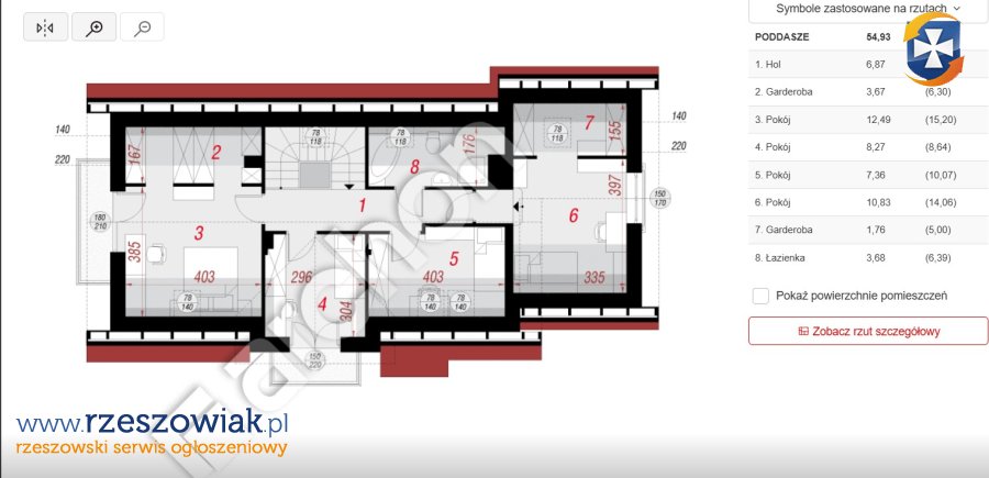 powierzchnia działki 465 m2.