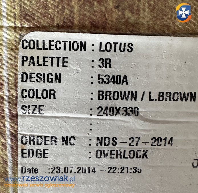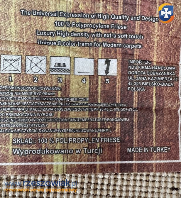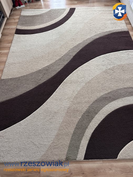 Sprzedam dywan o wymiarach 240x330cm, kolor beżowo-brązowy, nowoczesny wzór. Dywan w dobrym stanie, wyprodukowany w Turcji. Odbiór w Tyczynie.