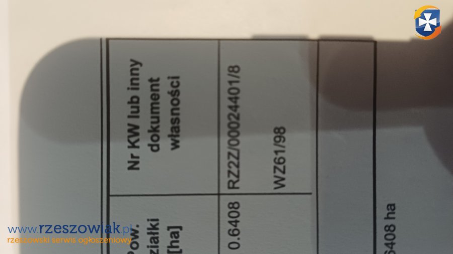 Księga wieczysta nr.RZ2Z/00024401/8..działka nr.1458 obreb 0004 Zabratowka resztę pytan pod nr.tel.690-080-219