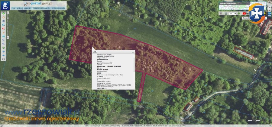 Sprzedam działkę rolną w Borku Nowym- 1,36 ha, numer działki 2790, klasa gruntów III oraz IV- pismo z PGE o zapewnieniu przyłącza oraz z gminy Błażowa o doprowadzeniu wod-kan na zabudowę zagrodową.