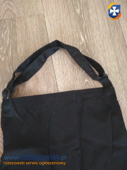 Sprzedam fartuch gastronomiczny, kelnerski czarny z regulacją na szyi, rozmiar uniwersalny, używany, niezniszczony.szer 68, dł 91 ( nie licząc paska na szyję), dł pasków bocznych 89. Cena 10 zł. Do odbioru osobistego w Rzeszowie.