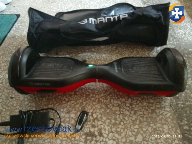 Sprzedam howerboard , mało używany , po jednej osobie , 100% sprawny , w komplecie z ładowarką, pilotem i torbą. Firmy Manta .