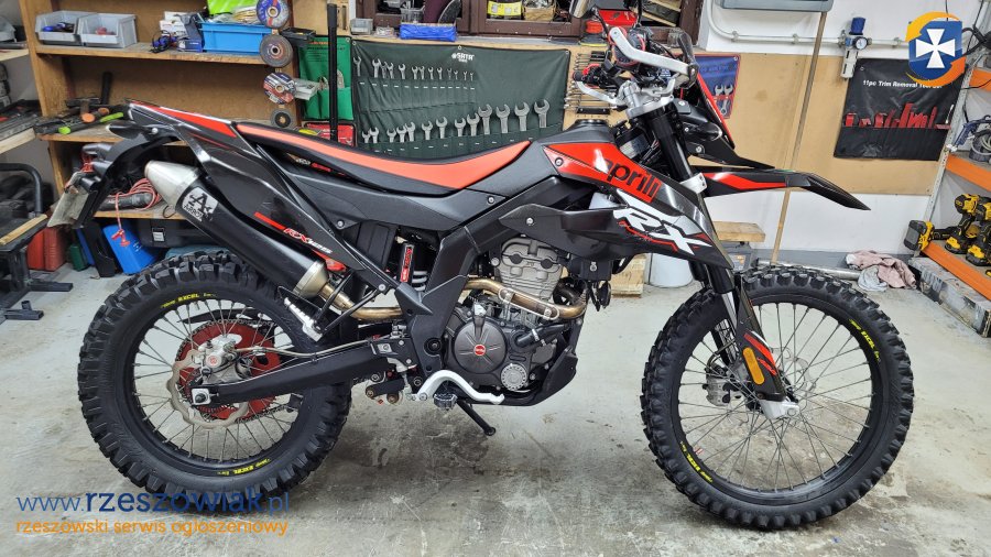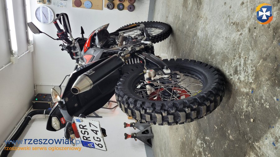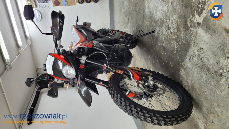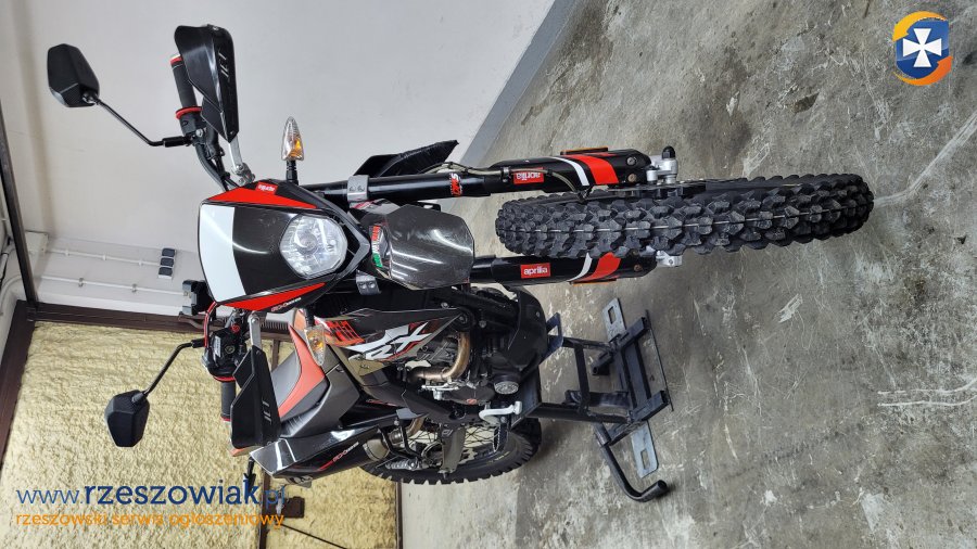 Sprzedam jeden z lepszych 125 do zabawy off road czyli Aprilię RX 125 z ABSem, rocznik 2020 na wtrysku Euro 4 czyli najlepsza wersja. Moc 15 KM, waga 134 kg, wysokość siodełka 890mm. Motocykl kupiony u dealera Dobek Racing w Tarnowie, jestem pierwszym właścicielem, sprzęt jest w 100% sprawny mechanicznie, bez wycieków, nie wymaga żadnego wkładu finansowego. Olej (Motul 4T 7100 5W40) i filtry zmienione przy przebiegu 23,000 km, producent zaleca zmianę co 6 tysięcy, ja zmieniałem zawsze co 3 tysiące. Pierwsza wymiana była przy 300km druga przy 1000km, także silnik jest w super kondycji, nie pobiera oleju, nie dymi, nic mu nie dolega, nie był rozbierany, nie licząc ściągnięcia pokrywy do kontroli luzu zaworowego. Sprzęt serwisuję sam, zawsze na najlepszych częściach zamiennych lub oryginałach. W zawieszeniu przednim dwukrotnie zmieniałem uszczelniacze i olej, zawieszenie ustawione pod wagę +- 70 kg. Z dodatków to są dołożone handbary Barkbusters, uchwyt na telefon z ładowaniem indukcyjnym + usb Midland, wydech Arrow (katalizator został na miejscu), pancerne dętki Michelin UHD 4mm i przedłużona płyta pod silnikiem. Napęd w dobrym stanie, tył zębatka oryginał, przód JT 13z, łańcuch DID 428 złoty X ring, opony spokojnie starczą na następny sezon, aktualnie założone są MotoZ Tractionator Desert H/T. Oczywiście Aprilią można się poruszać po drogach publicznych, ma ważne OC i PT do 18 lipca 2026r, są dwa kluczyki i cała papierologia czyli faktura, certyfikat zgodności, homologacja, karta pojazdu, instrukcja obsługi itd. itp.