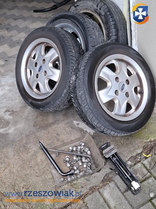 Sprzedam komplet kół do Forda KA Rozstaw śrub 4x108 Felga 14 cali, stan bardzo dobry, dodatkowo 2 kpl śrub, podnośnik, klucze, cena 555 zł Dodatkowo dokładam dwie prawie nieużywane opony.