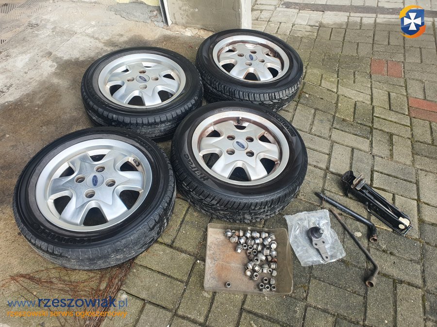 Sprzedam komplet kół do Forda KA Rozstaw śrub 4x108 Felga 14 cali, stan bardzo dobry, dodatkowo 2 kpl śrub, podnośnik, klucze, cena 555 zł Dodatkowo dokładam dwie prawie nieużywane opony.
