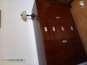 + szafa trzydrzwiowa â bardzo pojemna, z drążkiem na ubrania oraz systemem półek i szufladami (wysokość: 196 cm, szerokość: 134 cm, głębokość: 54 cm).