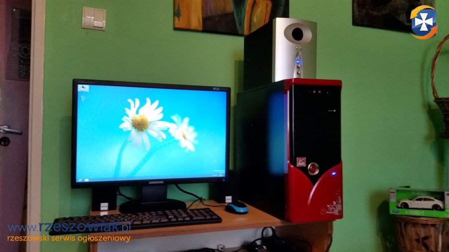 Sprzedam komputer 4 rdzeniowy cały zestaw. Procesor AMD ATHLON II X4 640, 3,00GHz, Ram Samsung 8GB DDR3 1600MHz, Grafika ATI Radeon HD 5770 His 1GB, Dysk Hdd 500GB, płyta główna Asus, napęd dvd, klawiatura, myszka, subwoofer z głośnikami, monitor LCD Samsung 2243NW. Wgrany świeży windows 8. Dobry do grania w Lola, CSa i Wiedźmina 3. Odbiór osobisty w Rzeszowie.