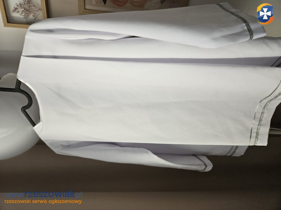 Sprzedam komrze komunijną, rozmiar uniwersalny. Czysta biel ze srednrnymi wstawkami. Druga zapasowa bez Hostii gratis.
