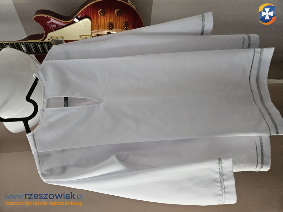 Sprzedam komrze komunijną, rozmiar uniwersalny. Czysta biel ze srednrnymi wstawkami. Druga zapasowa bez Hostii gratis.