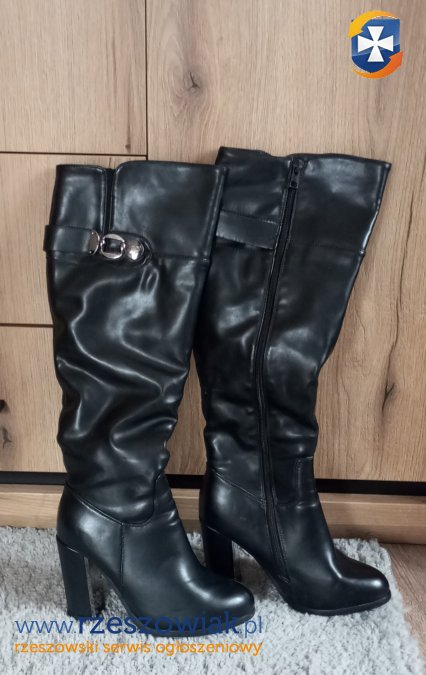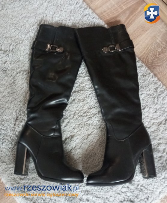 Sprzedam kozaki,kupione w CCC.ECO- skóra.Rozmiar 37.Ubrane 2 razy.Obcas klocek 8/10 cm, obwód cholewki (góra) 38 cm,wysokość cholewki od podeszwy 50 cm.