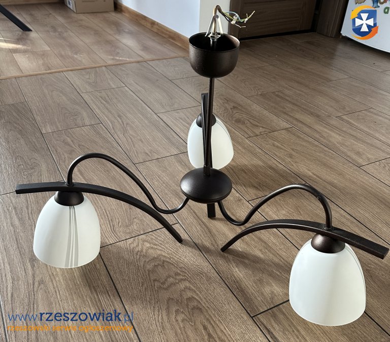 Sprzedam lampę sufitową na 3 żarówki E27. Stan bardzo dobry. Robiona na zamówienie, kolor opalizujący brąz. Rozpiętość 60cm.
