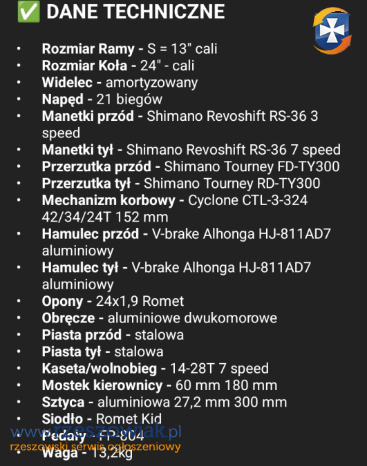 Rower Romet Rambler koła 24, Shimano