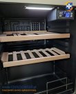 Półki są wysuwane. Szyba jest z bezpiecznego szkła i ma ochronę UV. Temperaturę można łatwo sterować przy pomocy przycisków a zakres temperatury to 4° - 22° C. Lodówka jest cicha.