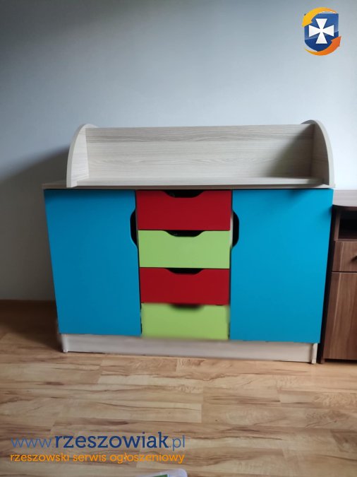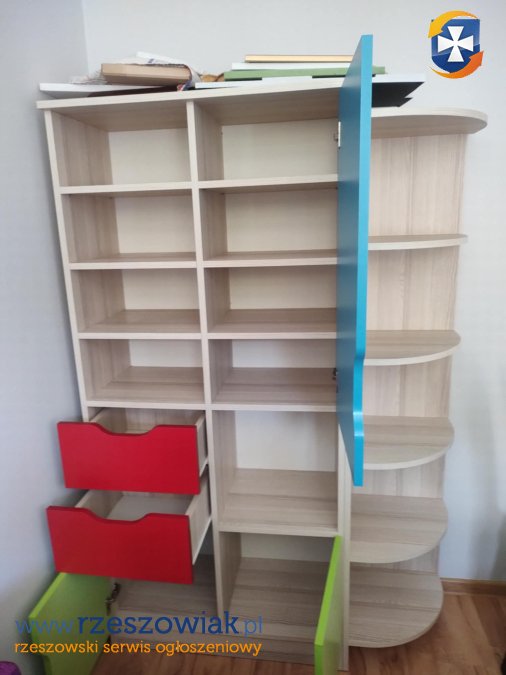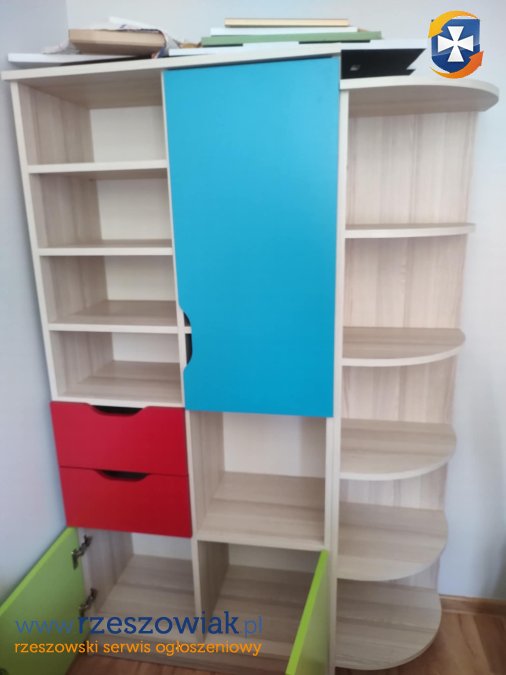 Sprzedam meble do pokoju dziecięcego. Zadbane bardzo praktyczne. Idealne do przechowywania zabawek, ubrań lub innych przedmiotów. W skład zestawu wchodzi szafa, regał, komoda oraz półka wisząca. Gorąco polecam napewno jeszcze posłużą