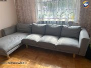 Sprzedam narożną kanapę w kolorze jasnoszarym. Możliwość uniwersalnego montażu leżanki zarówno po prawej jak i lewej stronie. Stan dobry, cena 350 zł.