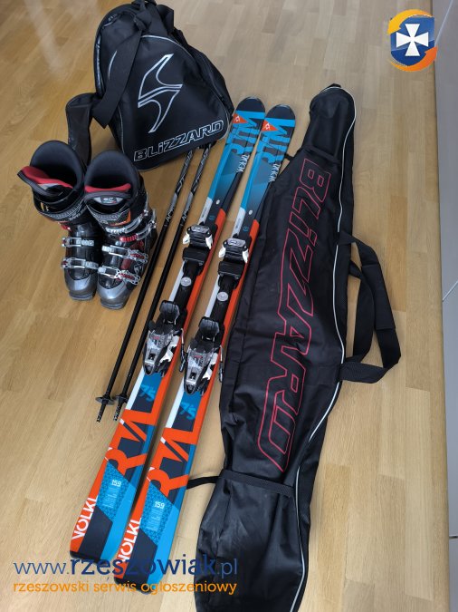 Sprzedam narty carvingowe Volkl rozm. 159cm, buty na nogę 42 ( wkładka buta rozm. 27,5cm), kijki i pokrowce. Komplet używany w stanie jak widoczny na zał. foto .