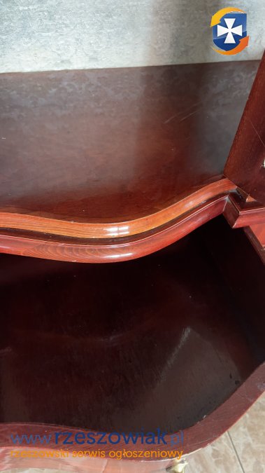 Sprzedam niezwykle efektowną witrynę w stylu klasycznym, o bogatej formie i wysokiej jakości wykonania. Mebel zachwyca detalami: giętymi szybami, dekoracyjnymi rzeźbieniami oraz eleganckim wykończeniem wnętrza. Idealnie sprawdzi się w jadalni jako ekspozycja szkła, porcelany i ozdobnych dodatków.