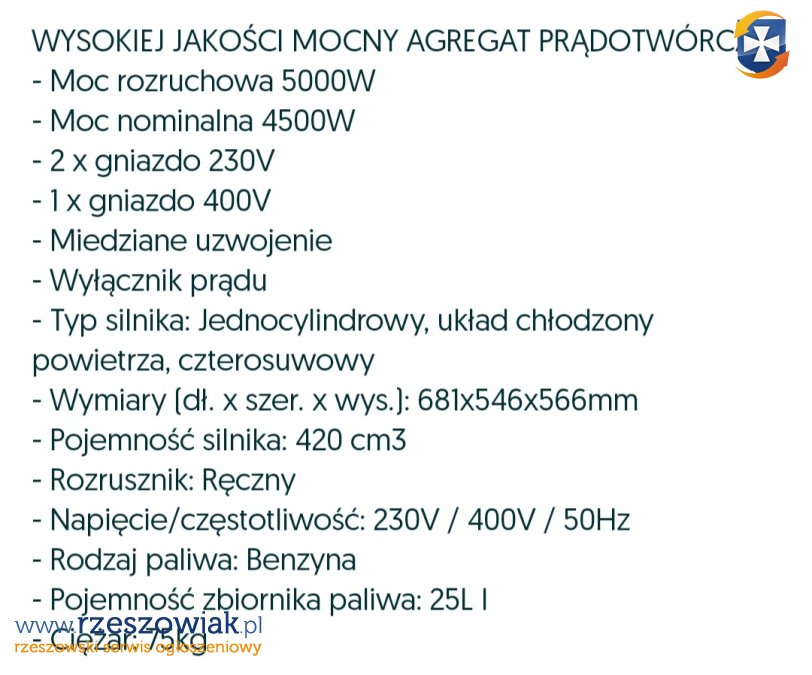 Sprzedam nowy agregat prądotwórczy. Był zalany i odpalony do sprawdzenia. Kontakt pod nr tel 605-526-505
