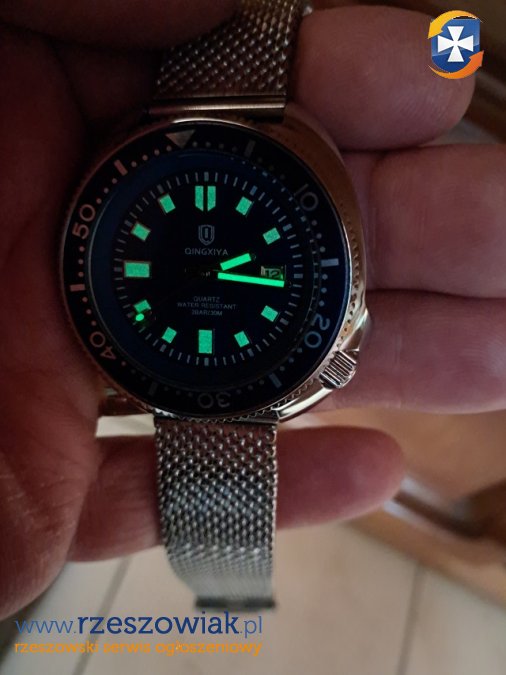 Duży, masywny, efektowny zegarek z datownikiem.