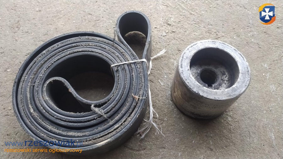Sprzedam pas wraz kołem aluminiowym o średnicy 140 mm z otworem 38 mm na klin . Długość pasa ok 2,7 mb szerokość 10 cm . Możliwość zamiany na twarde drewno opałowe . tel. 692624816