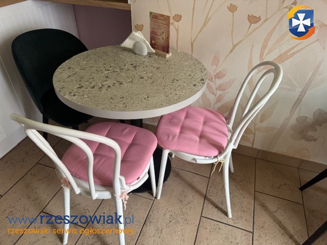 sprzedam po likwidacji kawiarni 4 stoliki i 7 białych krzeseł, blaty stolików włoski styl