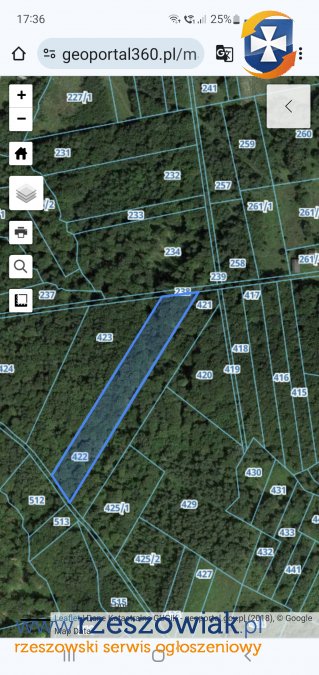 Las jest w dwóch kawałkach położonych obok siebie na działkach nr 420 i 422.