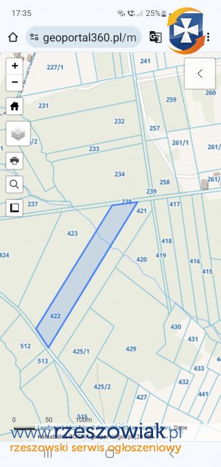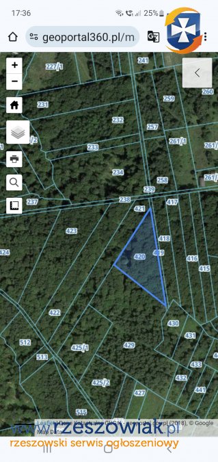 Las jest w dwóch kawałkach położonych obok siebie na działkach nr 420 i 422.