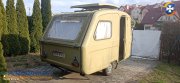 Sprzedam przyczepę kempingową Niewiadów N126E. Opłacona ubezpieczona. Przegląd dożywotni. Przyczepka po częściowym remoncie i własnym pomyśle. Cała została wyczyszczona uszczelniona żywicą epoksydową. Później została pomalowana dwa razy farbą Poliuretanową do jachtów. Z wewnątrz wyczyszczona pomalowana również żywicą epoksydową. Potem ocieplona matą izolacyjną Alufox. Na wykończenie oklejona wykładziną. Podłoga została ocieplona pianą pur potem położone panele. Wszystko wykończyłem linami dekoracyjnymi. Spód nie pognity nie zardzewiały. Rama zdrowa. Zacząłem konserwować Hamerrite ale nie skończyłem. Tylnia szyba do roboty sam robiłem z pleksy ale to był nie wypał strzeliła albo od ciepła albo za sztywna i strzeliła na dołkach. . Wtyczka od prądu do wymiany przerywa. Koszt 20zł max. Całe wnętrze można jeszcze zagospodarować. Do tego dodaje komplet opon są mi nie potrzebna. Sprzedaję bo w tamtym roku byłem z nią tylko dwa razy. Nie moja bajka. Tel. 502311574