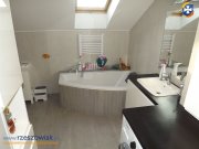 płytki ceramiczne w łazienkach, wyposażenie łazienek: 2 wanny, kabina prysznicowa, 2 kompakty wc, 3 umywalki, szafki łazienkowe w zabudowie,