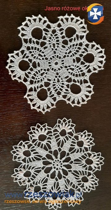 Sprzedam ręcznie robione przeze mnie serwetki pokazane na zdjęciach o średnicach ok 20cm i 23cm. Cena: 15zł za 1 sztukę.