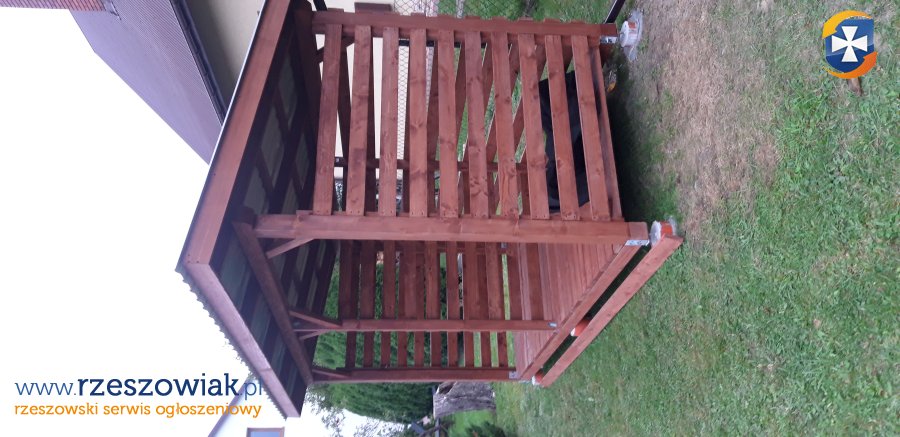 Sprzedam różne meble do ogrodu wykonam pod zamówienia drewutnie,altanki,zadaszenia tarasów,pergole i inne konstrukcje z drewna.Drewno jest strugane czyszczone malowane impregnatem kompletnie od murków po dach ,zajmujemy się też naprawą mebli ogrodowych wymiana rynien sztachet itp więcej info tel.