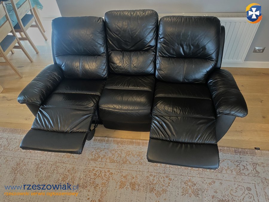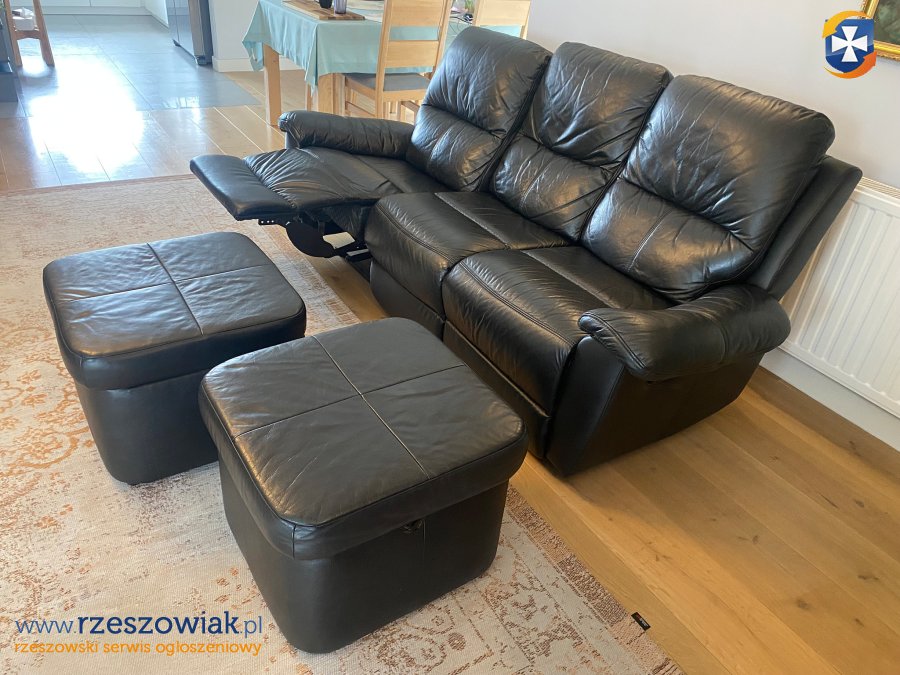 Sprzedam sofę skórzaną czarny mat z funkcją RELAX I dwie pufy. meble w bardzo dobrym stanie. Funkcja relax pozwala wysunąć podnóżek i pochylić oparcie do tyłu. Uzyskujemy dzięki temu bardzo wygodną pozycje do odpoczynku lub np oglądania telewizji, czytania książek, słuchania muzyki itp.