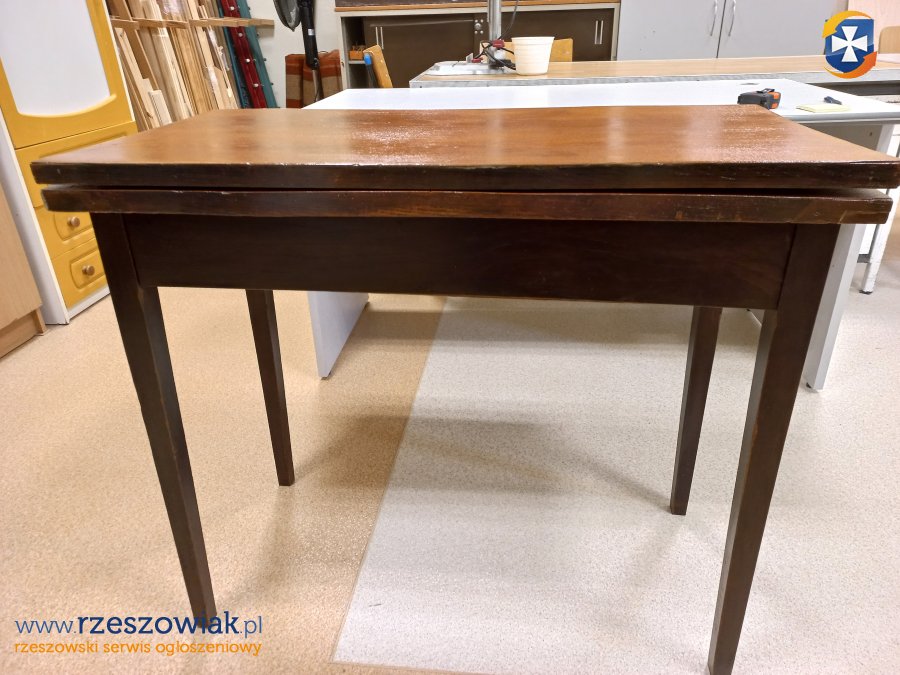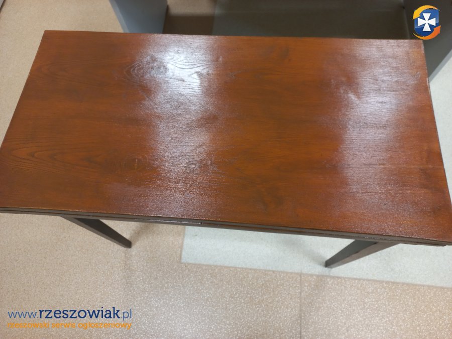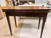 Sprzedam stary drewniany stolik do brydża. W całości wykonany z drewna (raczej dąb bo solidny i ciężki). Rozkładany. Przed rozłożeniem 47x94 wys. 81 po rozłożeniu 93,5 na 94,5. Odnowiony. Chyba przedwojenny.