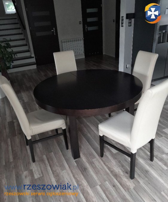 Sprzedam stół okrągły średnicy 140cm + wkładka 50cm w kolorze wenge.Stół jest używany więc posiada normalne ślady użytkowania.Podana cena za sam stół.