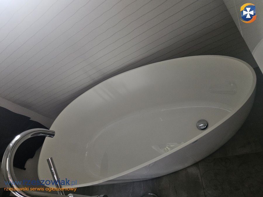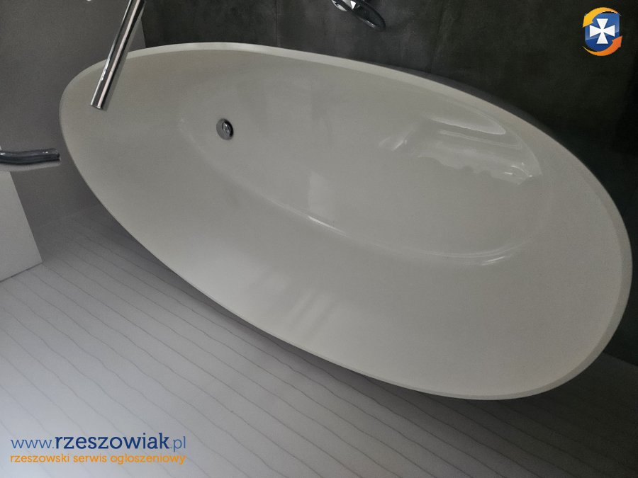 Jest to odlewany kompozyt, który łączy w sobie wytrzymałość naturalnych materiałów z plastycznością wysokogatunkowych żywic. Odporna, łatwa w utrzymaniu. Zapewnia komfort i elegancję. Idealna do nowoczesnego wnętrza. Bez przelewu nadmiaru wody, z korkiem klik- klak. Wys. W najwyższym. miejscu ok.62-64cm, szer. A w najszerszym ok.77-78cm, długość ok. 172cm.Jest nowa, ale stała ok. 3-4 lata. Teraz po zamontowaniu i kilku testach czy nie przecieka jest do sprzedaży powodu zmiany koncepcji w łazience. W salonie kosztuje ok. 4500zł - 5000zł. Odbiór Hermanowa k. Tyczyna.