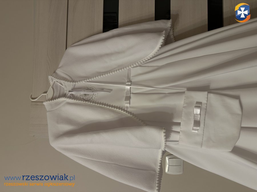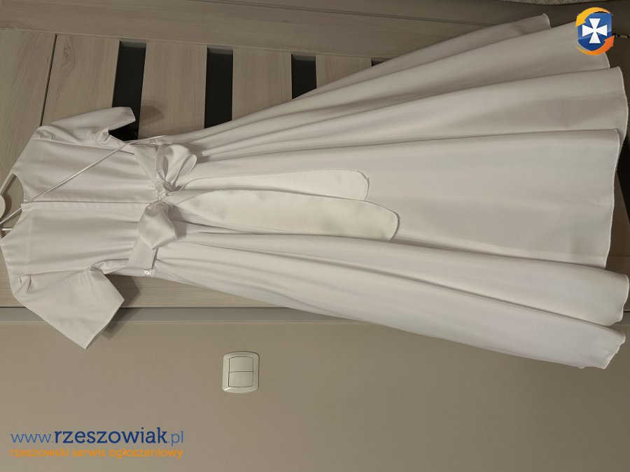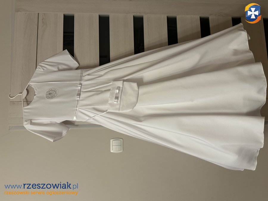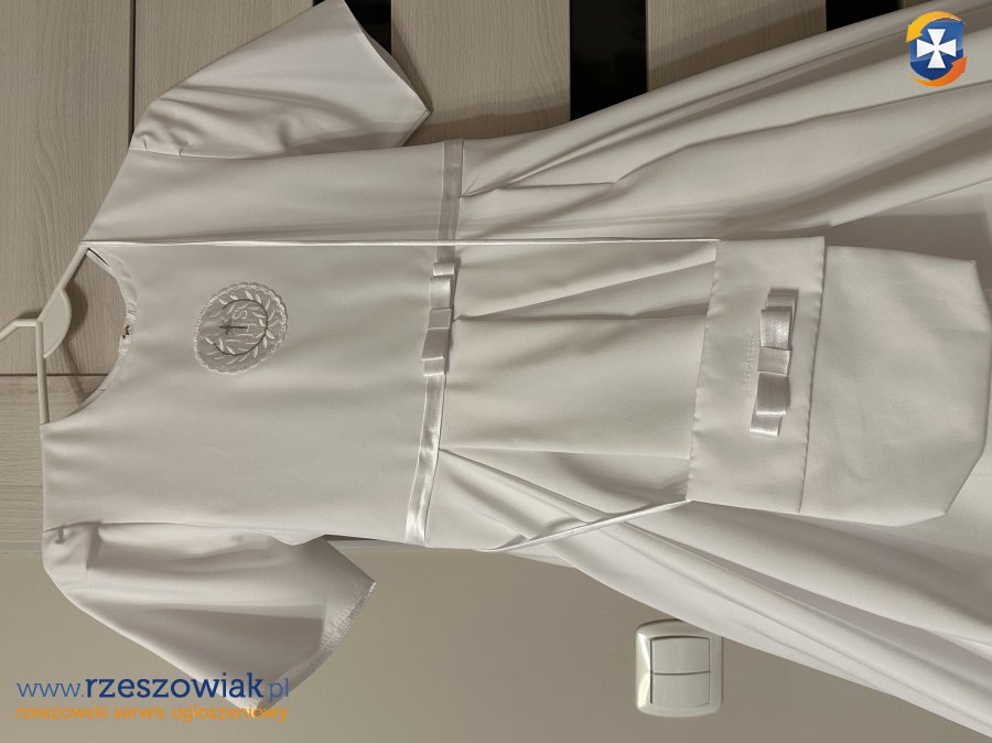 Sprzedam sukienko - albę komunijną. Uszyta z żorżety, pelerynka polarowa. W zestawie oprócz sukienki i pelerynki dołączony wianek i torebka. Stan bardzo dobry. Można założyć koło do halki. Wymiary sukienki :