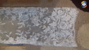 Sprzedam suknię ślubną francuskiej firmy CYMBELINE rozmiar 36. Suknia założona 2 razy - w dniu ślubu oraz na sesję plenerową. Kolor ivory/ecru, materiał muślin. Dla Pani o wzroście 160-165 cm +/- 10 cm obcas. Do sukni dołączam koronkowe bolerko i długi welon. Stan sukni bardzo dobry.