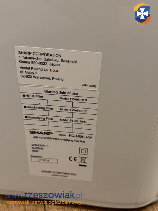 OKAZJA oczyszczacz sharp KC-A60EU-W 600zł