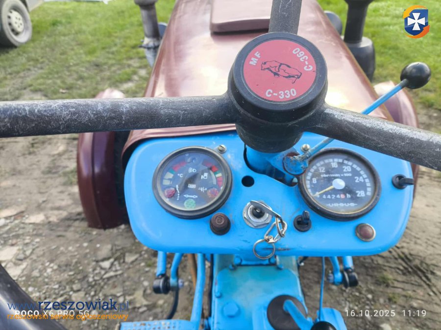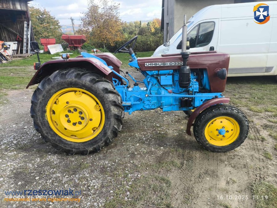 Sprzedam Ursus C-330 rok 1973, wersja eksportowa, ciągnik 2 lata temu po remoncie, silnik, skrzynia, sprzegło, odmalowany, błotniki,maska wypiaskowane wyspawane, pomalowane epoksydem i wewnętrzna strona błotników pomalowana "Raptorem" w kolorze, ostatnio wymienione drążki kierownicze, olej w skrzyni, i wszystkie przecieki uszczelnione, ciągnik zalany płynem opony tył ok 70%, przód 90%,, ciągnik używany sporadycznie, dostałem go od dziadka jestem drugim właścicielem,od nowosci na jednym gospodarstwie, teraz więcej stoi niż jeździ szkoda żeby stał, założony alternator, wymieniony ostatnio rozrusznik, ubezpieczenie i przegląd aktualne.Cena jaka mnie interesuje to 27000 do rozsądnej negocjacji. Więcej informacji pod nr tel. 605 526 505