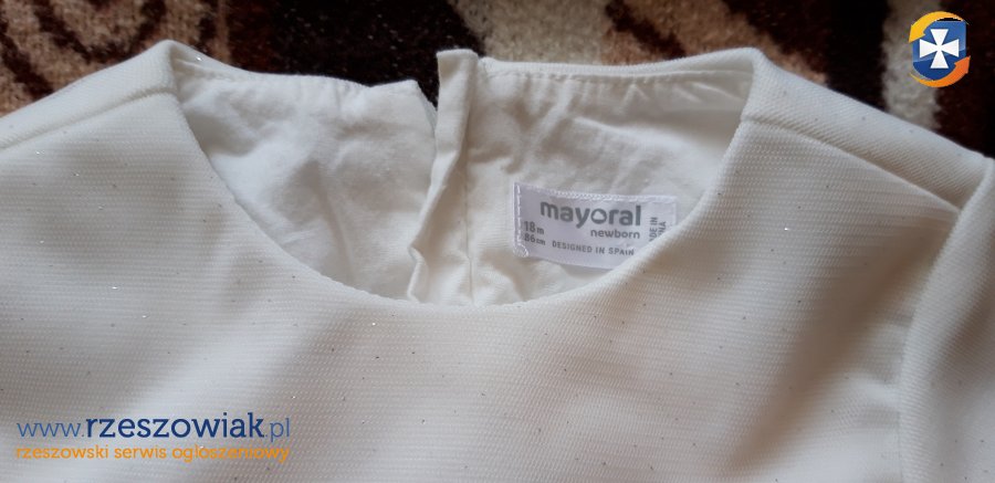 Sprzedam używaną piękną brokatową sukienkę na chrzest dla dziewczynki hiszpańskiej marki mayoral, w rozmiarze 80/86.