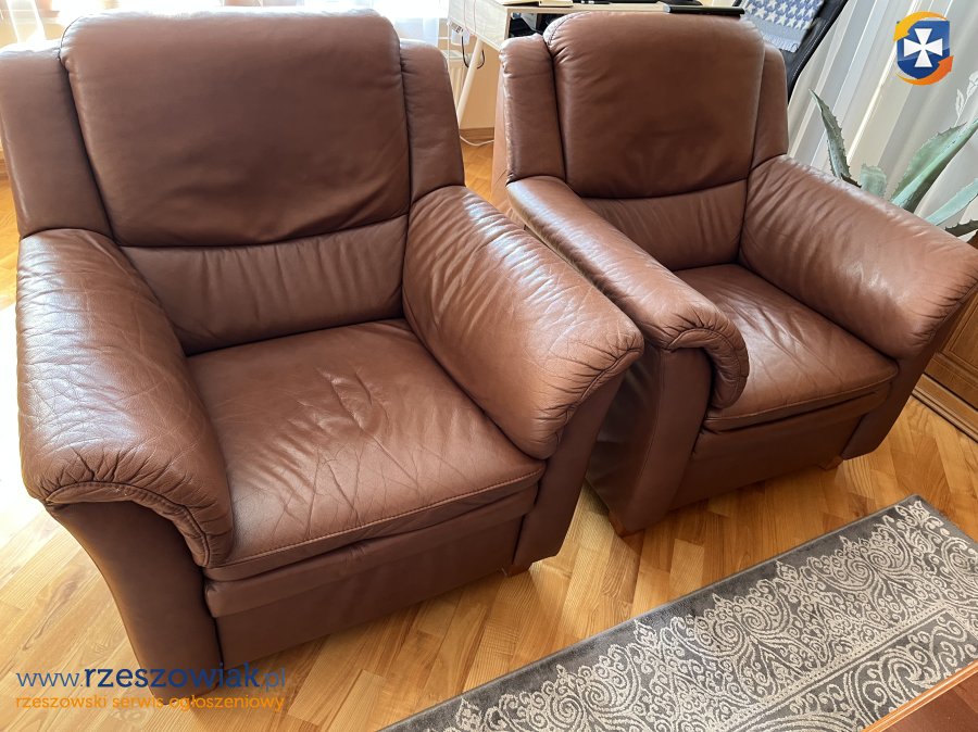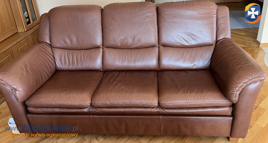 Sprzedam używaną skórzaną kanapę + 2 fotele. Komplet firmy Etap. Obicie skórzane, sofa rozkładana. Wymiar sofy - 190x80x97, foteli 93x80x97. Lokalizacja w gminie Świlcza.