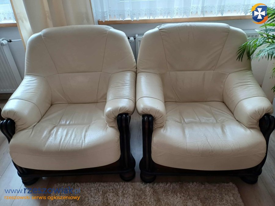 Sprzedam używane meble wypoczynkowe-kanapa i 2 fotele. Skóra na kanapie ma niewielkie uszkodzenia,fotele w dobrym stanie. Odbiór-Rzeszów