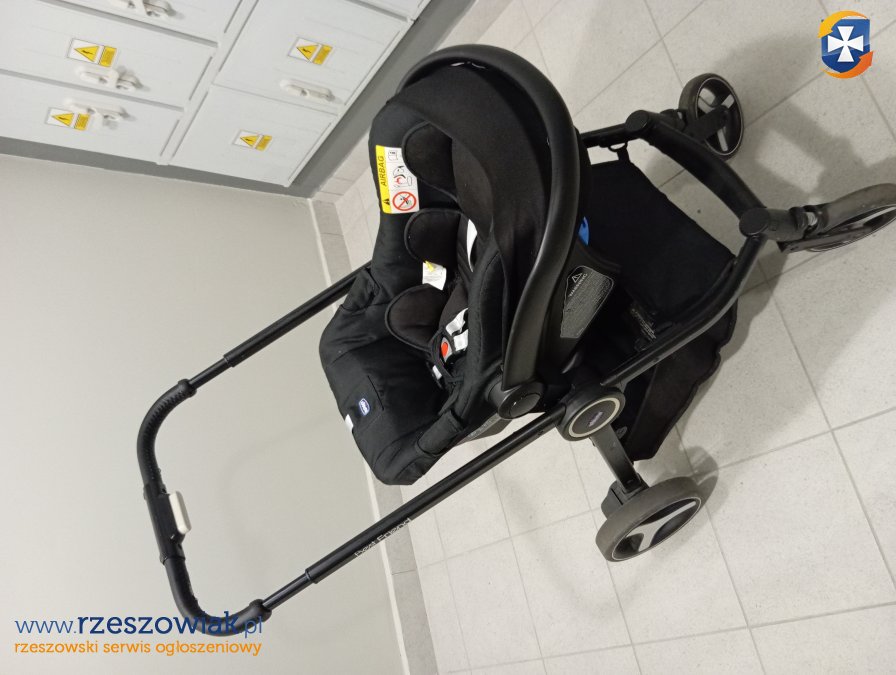 Sprzedam używany wózek Chicco wraz z gondolą, spacerówką oraz nosidełkiem i bazą do samochodu.. Marka Chicco.