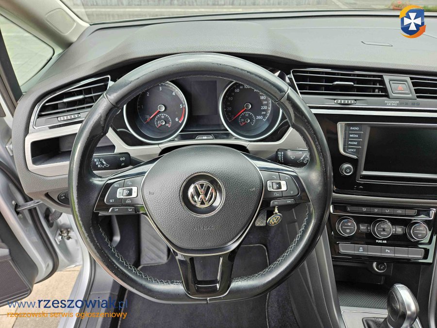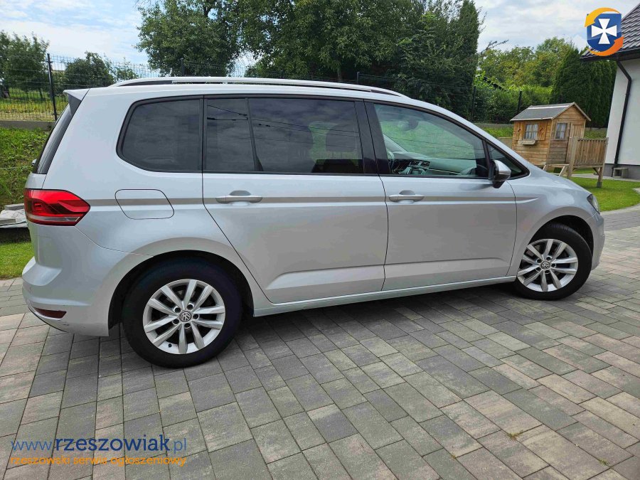 Sprzedam VW Touran 2.0 TDI 150 KM z 2016 roku z automatyczną skrzynią biegów DSG, 7-osobowy. Hak składany w tylnym zderzaku.